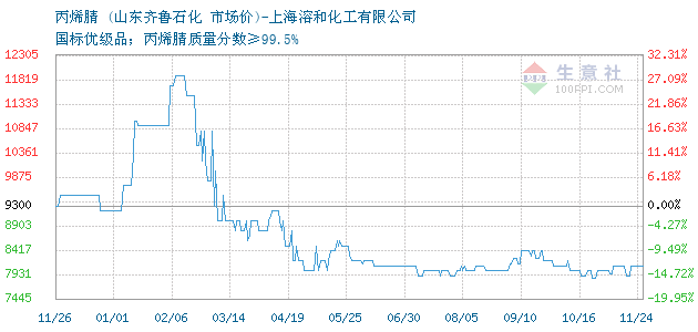11月24日山东齐鲁石化丙烯腈为8100元