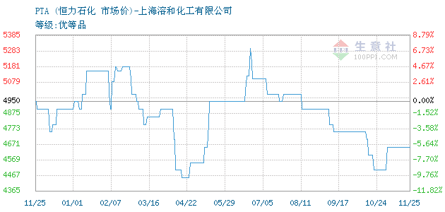 11月24日恒力石化关于PTA的报价为4650元/吨。PTA的规格:等级:优等品。该报价有效期为3天。报价提供方:上海溶和化工有限公司。