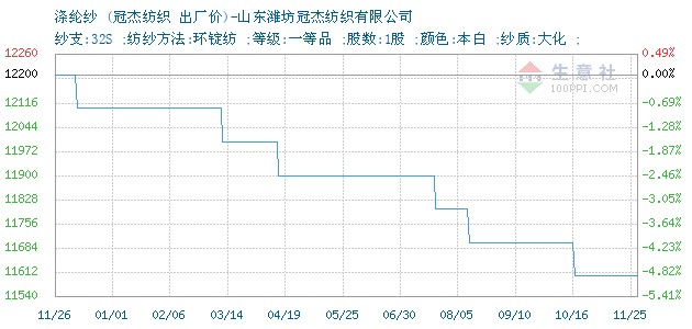 11月25日冠杰纺织32S涤纶纱为11600元