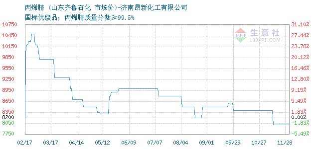 11月25日山东齐鲁石化关于丙烯腈的报价为8000元/吨。丙烯腈的规格:国标优级品;丙烯腈质量分数≥99.5%。该报价有效期为3天。报价提供方:济南昂新化工有限公司。