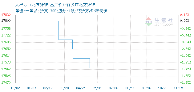 11月25日新乡市北方纤维有限公司关于人棉纱的报价为17500元/吨。人棉纱的规格:等级:一等品;纱支:30S;股数:1股;纺纱方法:环锭纺。该报价有效期为3天。报价提供方:新乡市北方纤维。