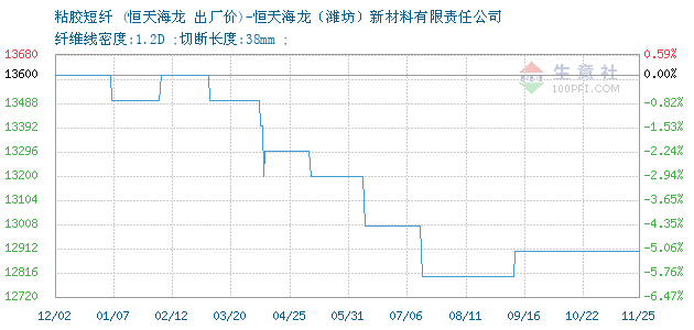11月25日恒天海龙粘胶短纤1.2D为12900元