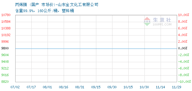 11月26日国产关于丙烯腈的报价为9800元/吨。丙烯腈的规格:含量99.9%,160公斤/桶,塑料桶。该报价有效期为3天。报价提供方:山东金文化工有限公司。