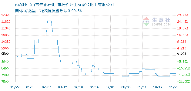 11月26日山东齐鲁石化丙烯腈为8100元