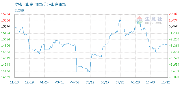 11月03日山东地区关于皮棉的报价为14892元/吨。皮棉的规格:3128B。该报价有效期为1天。报价提供方:山东市场。