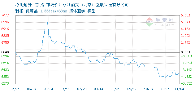 11月03日新拓关于涤纶短纤的报价为6390元/吨。涤纶短纤的规格:新拓 优等品 1.56dtex*38mm 熔体直纺 棉型 。该报价有效期为1天。报价提供方:永利熵策 (北京) 互联科技有限公司。