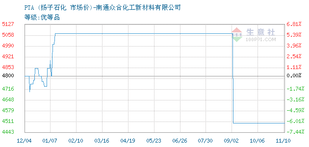 11月07日扬子石化关于PTA的报价为4500元/吨。PTA的规格:等级:优等品。该报价有效期为3天。报价提供方:南通众合化工新材料有限公司。