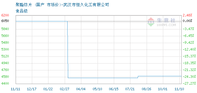 11月07日华润华蕾关于聚酯切片的报价为4600元/吨。聚酯切片的规格:食品级。该报价有效期为1天。报价提供方:武汉市恒久化工有限公司。
