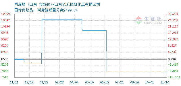 11月09日山东丙烯腈为7800元