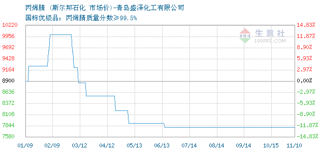 11月09日斯尔邦石化丙烯腈为7800元