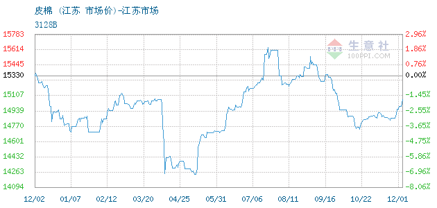 12月01日江苏地区关于皮棉的报价为15063元/吨。皮棉的规格:3128B。该报价有效期为1天。报价提供方:江苏市场。