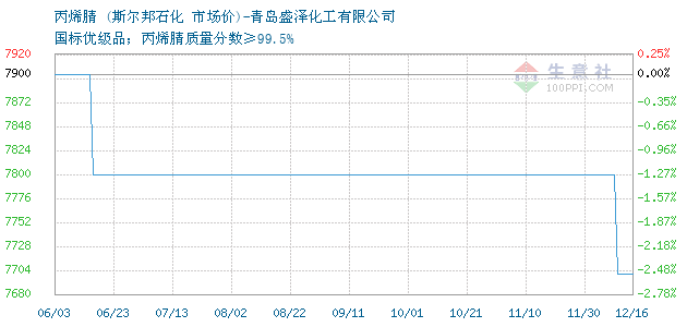 12月13日斯尔邦石化丙烯腈为7700元