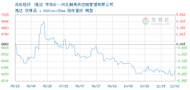 12月02日逸达关于涤纶短纤的报价为6340元/吨。涤纶短纤的规格:逸达 优等品 1.56dtex*38mm 熔体直纺 棉型 。该报价有效期为1天。报价提供方:河北触角供应链管理有限公司。