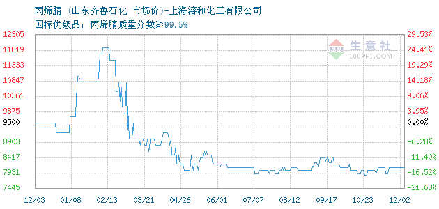12月02日山东齐鲁石化关于丙烯腈的报价为8100元/吨。丙烯腈的规格:国标优级品;丙烯腈质量分数≥99.5%。该报价有效期为3天。报价提供方:上海溶和化工有限公司。