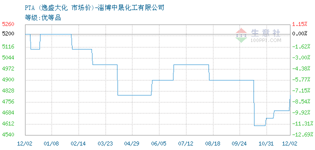 12月02日逸盛大化关于PTA的报价为4800元/吨。PTA的规格:等级:优等品。该报价有效期为3天。报价提供方:淄博中晟化工有限公司。