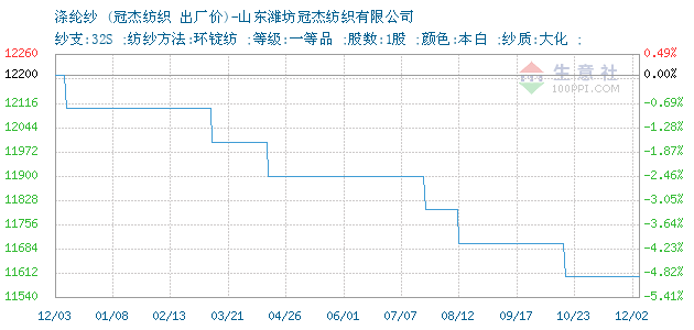 12月02日冠杰纺织32S涤纶纱为11600元