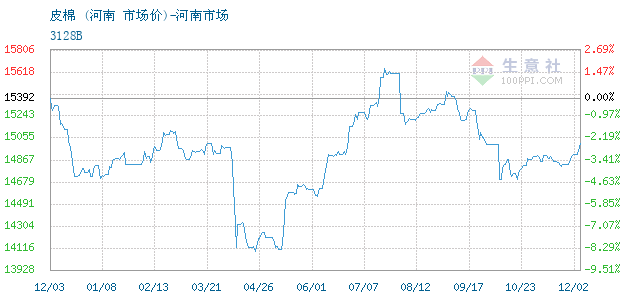 12月02日河南地区关于皮棉的报价为15009元/吨。皮棉的规格:3128B。该报价有效期为1天。报价提供方:河南市场。