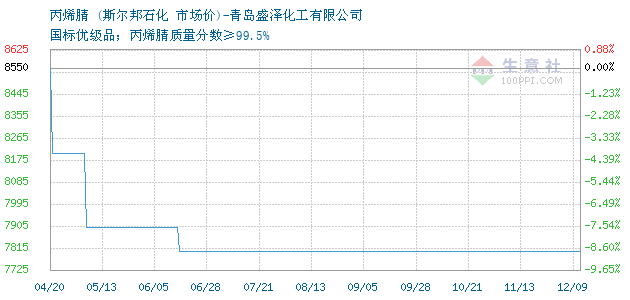 12月08日山东齐鲁石化丙烯腈为8100元 2025-12-08