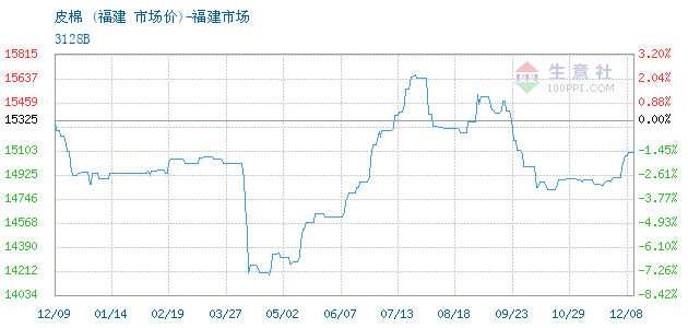 12月03日福建地区关于皮棉的报价为15065元/吨。皮棉的规格:3128B。该报价有效期为1天。报价提供方:福建市场。