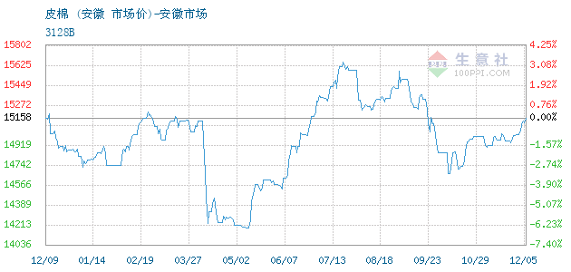 12月05日安徽地区关于皮棉的报价为15154元/吨。皮棉的规格:3128B。该报价有效期为1天。报价提供方:安徽市场。