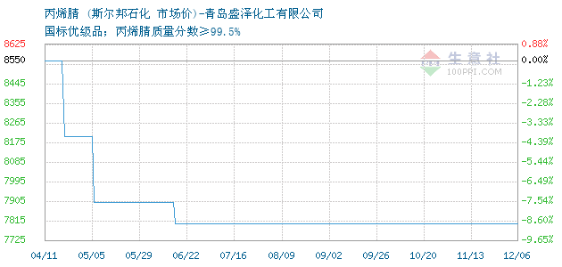 12月06日斯尔邦石化关于丙烯腈的报价为7800元/吨。丙烯腈的规格:国标优级品;丙烯腈质量分数≥99.5%。该报价有效期为3天。报价提供方:青岛盛泽化工有限公司。