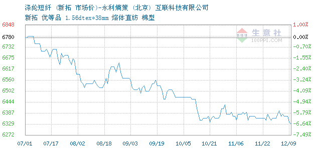 12月08日新拓关于涤纶短纤的报价为6340元/吨。涤纶短纤的规格:新拓 优等品 1.56dtex*38mm 熔体直纺 棉型 。该报价有效期为1天。报价提供方:永利熵策 (北京) 互联科技有限公司。