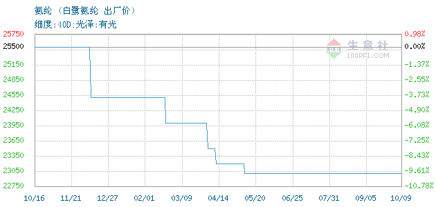 09月15日白鹭氨纶关于氨纶的报价为23000元/吨。氨纶的规格:细度:40D;光泽:有光。该报价有效期为3天。报价提供方:新乡化纤股份有限公司。
