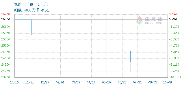 09月15日千禧关于氨纶的报价为24000元/吨。氨纶的规格:细度:40D;光泽:有光。该报价有效期为3天。报价提供方:华峰化学股份有限公司。