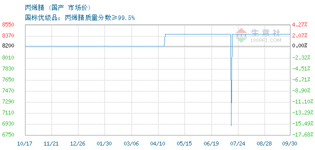 09月28日国产关于丙烯腈的报价为8400元/吨。丙烯腈的规格:国标优级品;丙烯腈质量分数≥99.5%。该报价有效期为7天。报价提供方:山东艾特化工有限公司。