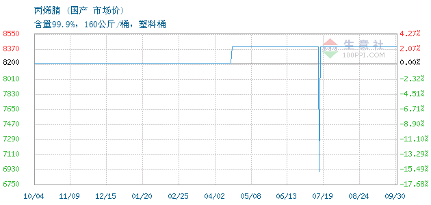09月28日国产丙烯腈为8400元