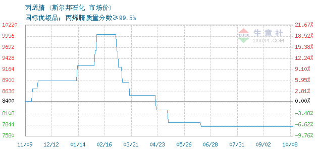 09月29日斯尔邦石化关于丙烯腈的报价为7800元/吨。丙烯腈的规格:国标优级品;丙烯腈质量分数≥99.5%。该报价有效期为3天。报价提供方:青岛盛泽化工有限公司。