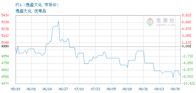 09月29日逸盛大化关于PTA的报价为4600元/吨。PTA的规格:逸盛大化 优等品 。该报价有效期为1天。报价提供方:南京双杰化工有限公司。