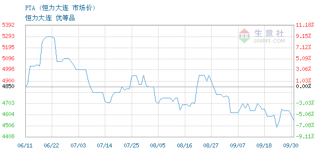 09月29日恒力大连PTA为4590元