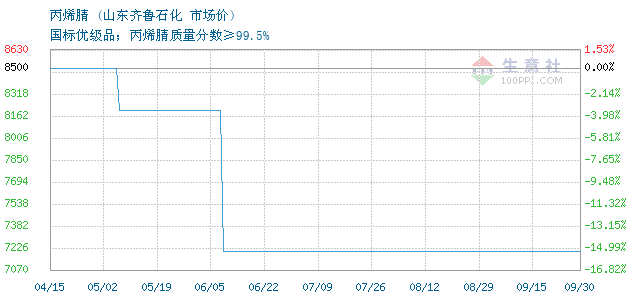09月30日山东齐鲁石化关于丙烯腈的报价为7200元/吨。丙烯腈的规格:国标优级品;丙烯腈质量分数≥99.5%。该报价有效期为3天。报价提供方:山东君烽新材料有限公司。