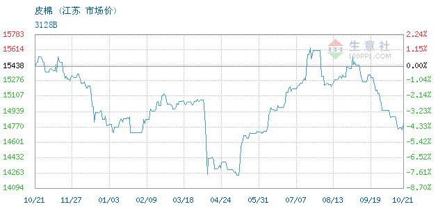 09月30日江苏地区关于皮棉的报价为14950元/吨。皮棉的规格:3128B。该报价有效期为1天。报价提供方:江苏市场。